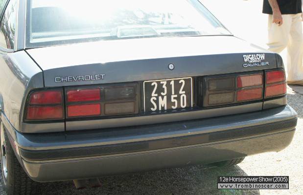 RECUES pour la Chevrolet Cavalier de Valras STEPHANE le 10/12/06 : 85/92 -2- PHIL R (Cnd) le 14/12/06 : 1988/1990 -3- VALIANTLORD le 26/12/06 : Generation 1987 a 1994. Cette calandre avec phare non monoblock est surement europeenne ou custom. -4- ALAN (TX) le 02/06/2008 : 1988/89 the Cavalier coupe, this is a 1988 or 1989 model. Some also said 1990 but it is NOT, as the seatbelts are mounted on the B-pillar and not in the door. This is an easy way to spot many GM products as almost all car models got the seatbelts mounted on the door panel in 1990. Since many GM cars changed body styles and other trim between 1988 and 1992, this can help pinpoint down to fewer years. - 5 - au bout de trois réponses identiques, je valide la proposition et la fiche se retrouvera dans le trombinoscar, une seule réponse si c'est le propriétaire qui se manifeste. Le webmestre ACM |
